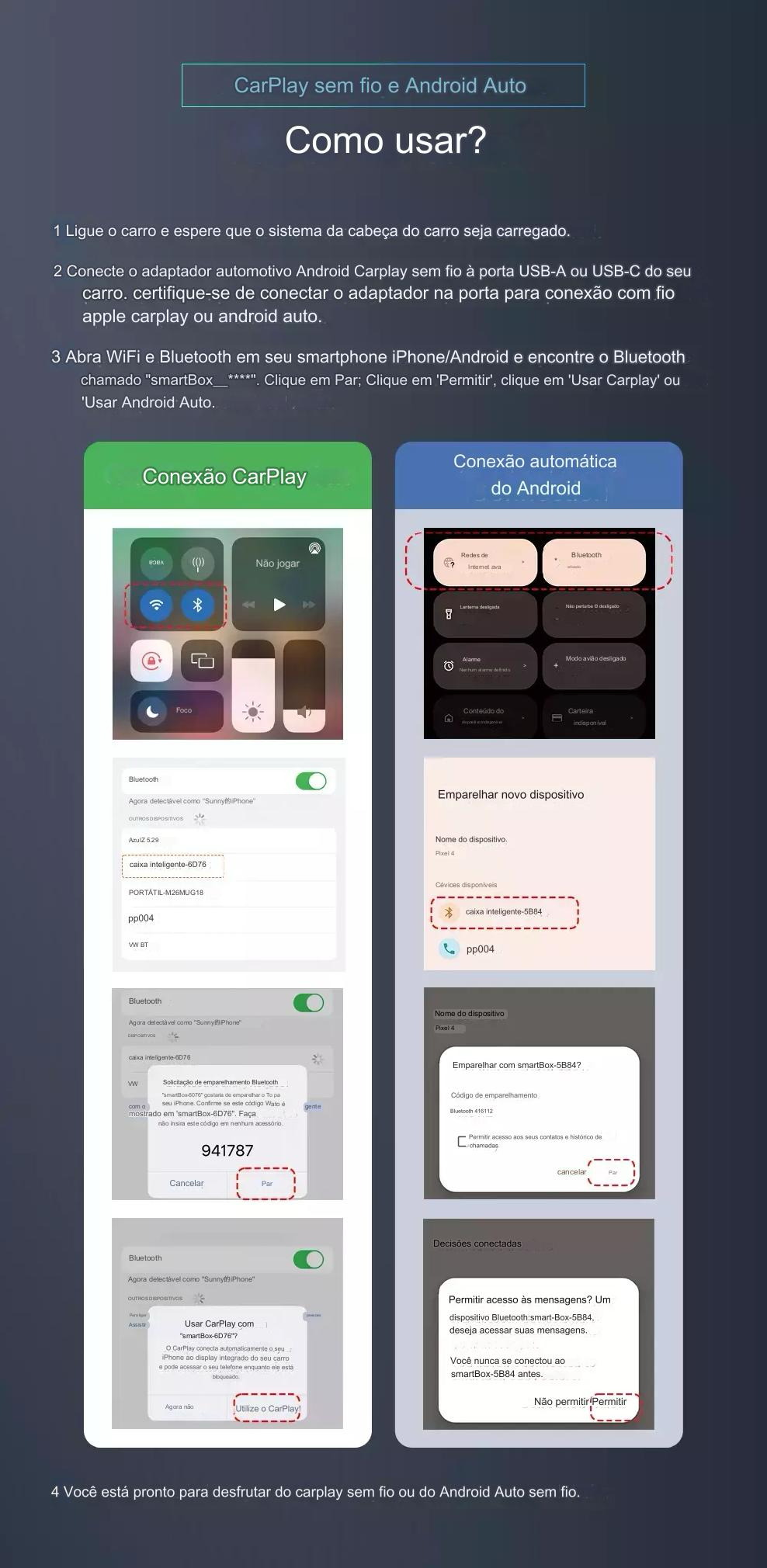 Adaptador para Apple Carplay e Android Auto sem Fio - Achadudos